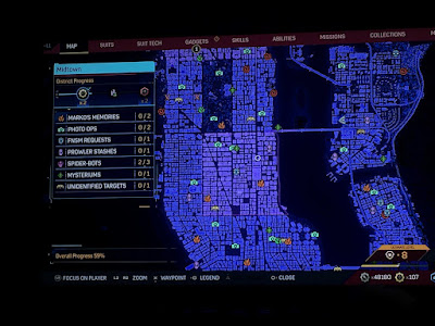 The second time, in "game plus" mode with all the enhancements activated, I reversed course from the original try. I played all the way through the main storyline first, and it really added to the intensity and urgency of the tale. Then I had an extremely entertaining and extended period of swinging around one section of the city at a time going through the stuff I'd littered the map with, and having a variety of different gaming experiences.